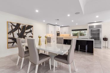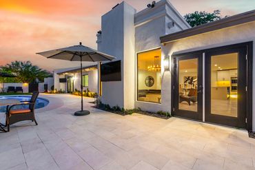 The Great Room has a gorgeous Brazilian quartz wrapped fireplace and opens to an expansive resort-like appointed yard with an outdoor kitchen just recently completed. Custom Pebble-Tech pool, and custom stone. State-of-the-art designer kitchen has Sub-Zero and Wolf Appliances, and a 6 ft Brazilian quartz waterfall island.
