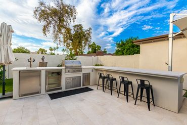 Outdoor Kitchen and all Appliances, Kegerator, Refrigerator, BBQ, Utility Drawers and Bar